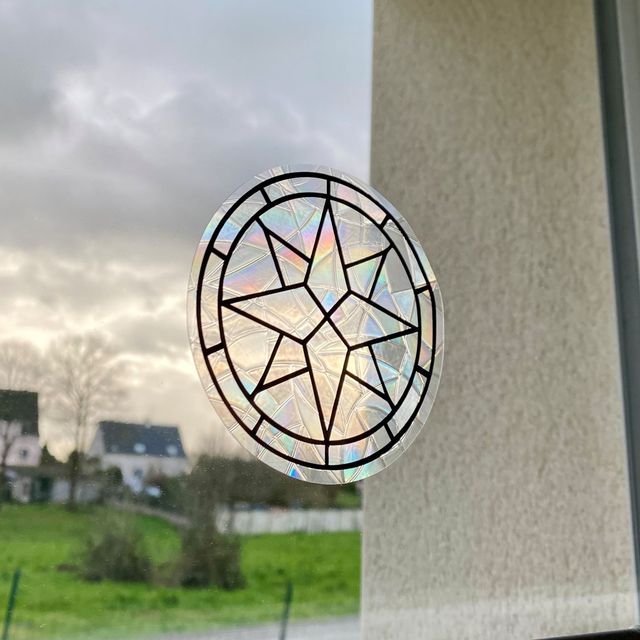 Attrape soleil sticker de fenêtre électrostatique, motif vitrail étoile du nord polaris