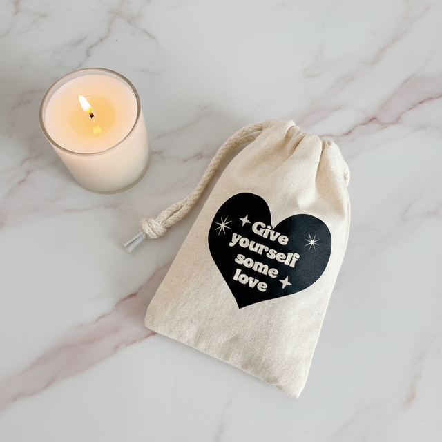 Pochon à cordons en coton recyclé "Give yourself some love".