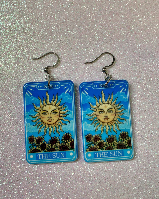 Faites rayonner votre lumière intérieure avec ces boucles d'oreilles colorées, représentant des cartes de tarot du soleil. Un bijou solaire, à la fois spirituel et joyeux, parfait pour celles et ceux qui veulent porter une énergie de bonheur, d’optimisme et de vitalité au quotidien 🌞
